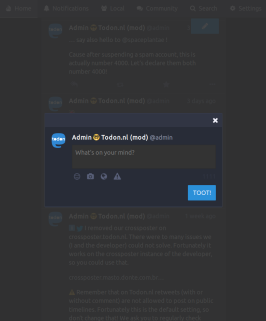 - On Todon.nl retweets are not allowed on public timelines. Fortunately this is the default setting, so don't change that! Quoted retweets are only allowed on public timelines when crossposted conditionally/manually (using a key word). We ask you to regularly check Todon.nl for interactions.